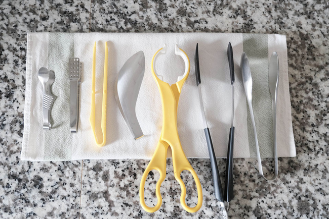 黄色いハサミのようなのは、子どもが赤ちゃんだった頃に哺乳瓶の消毒で使用したトングでとても役立ちました。その後はジャムを作る際に瓶の熱湯消毒などに使えたので今でも保管してます(補欠組)